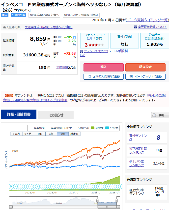 インベスコ 世界厳選株式オープン<為替ヘッジなし>(毎月決算型)