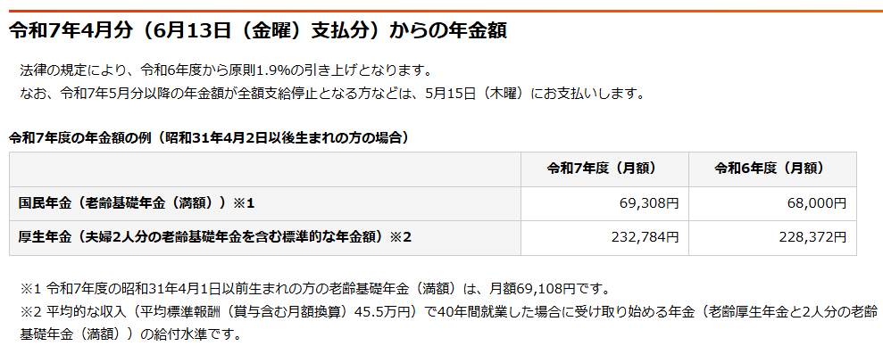 年金は物価等の影響を鑑みて、年度ごとに金額が改定されます。