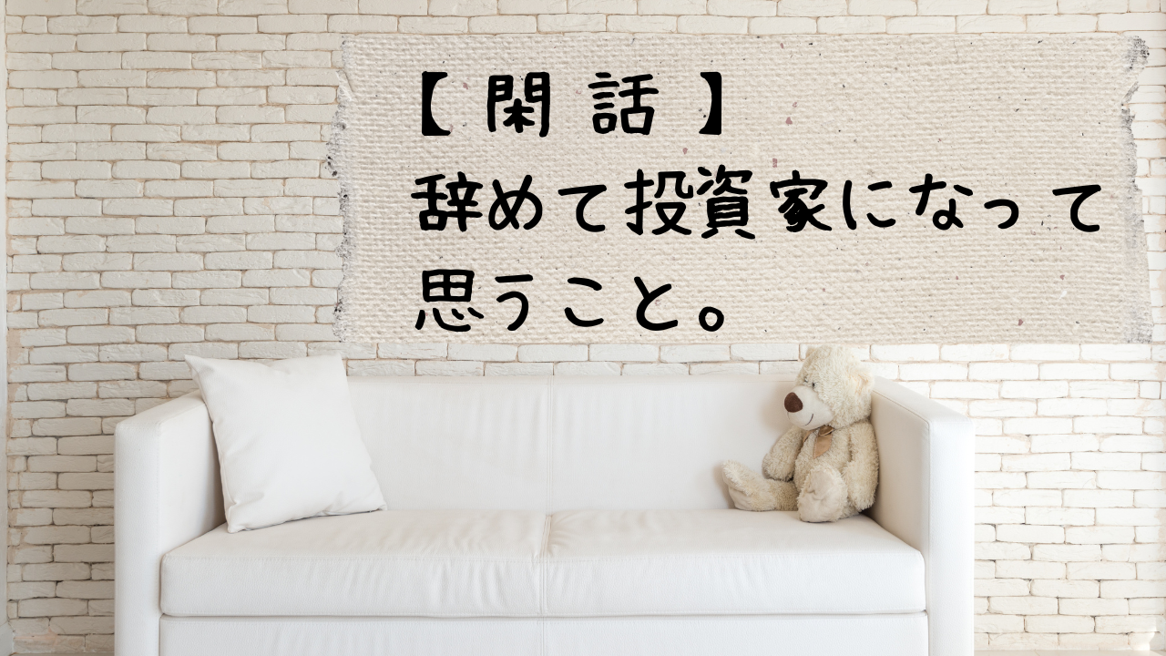 今回は、私が辞めて個人投資家になって思うことをお伝えしたいと思います。
